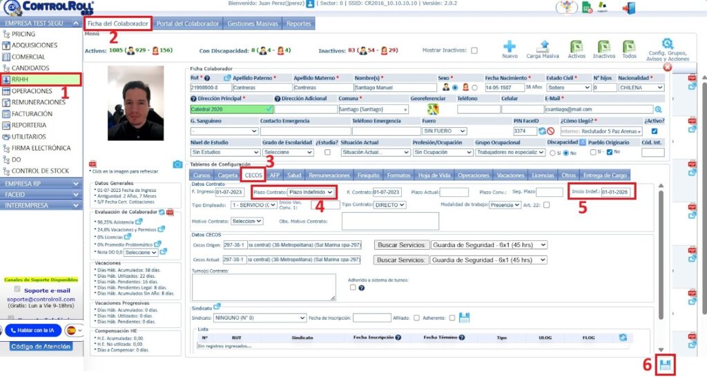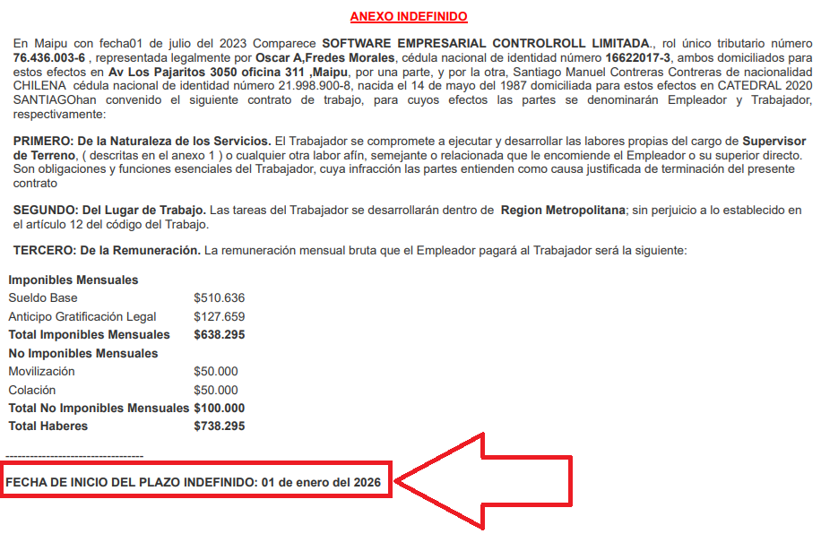 - Validar que tenga el plazo de contrato, “plazo indefinido”. De lo contrario seleccionarlo si corresponde.