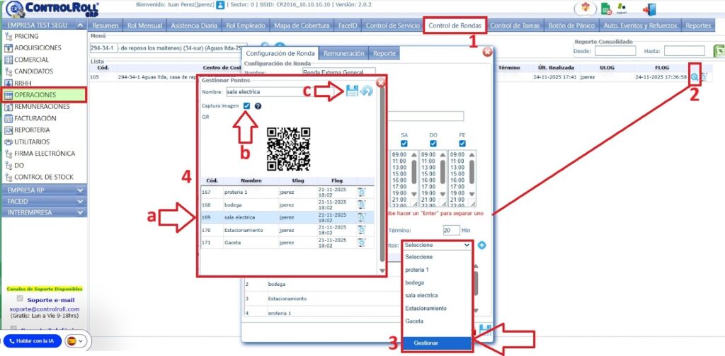 ControlRoll suma una nueva funcionalidad en la configuración de puntos de rondas del módulo operaciones, esta opción se llama “Captura Imagen”, el objetivo es capturar una fotografía en el momento en que se escanea el código QR del punto de la ronda donde se ubica el usuario, adjuntando esta imagen en el detalle del pdf de la ronda realizada de forma automática.