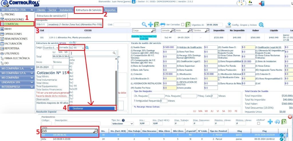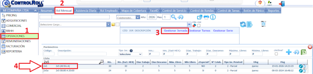 también pueden visualizarlo en el mantenedor de jornada del módulo pricing o comercial.