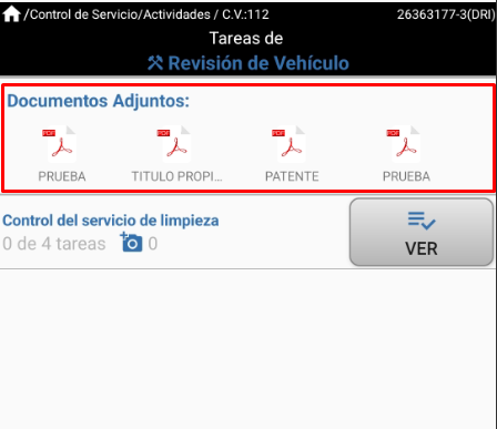 Con este funcionamiento, también se habilita para el Control de Servicio en ControlRoll APP, la posibilidad de visualizar estos documentos cargados siempre que en la actividad se encuentre configurado el ítem con documentos cargados.
