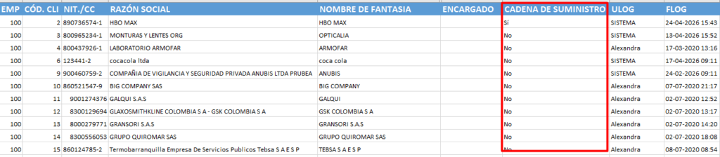 En el archivo Excel de descarga de información de clientes activos, pueden ver el campo de cadena de suministro el cual identifica con SI o NO.