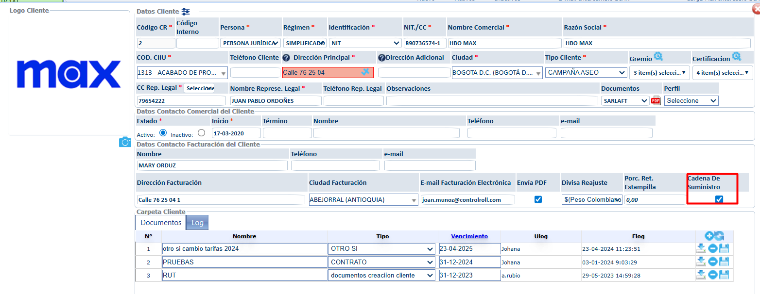 Posteriormente pueden abrir las fichas de cliente y seleccionar si el cliente es de Cadena de suministro si es así colocar check al campo y guardar la ficha.