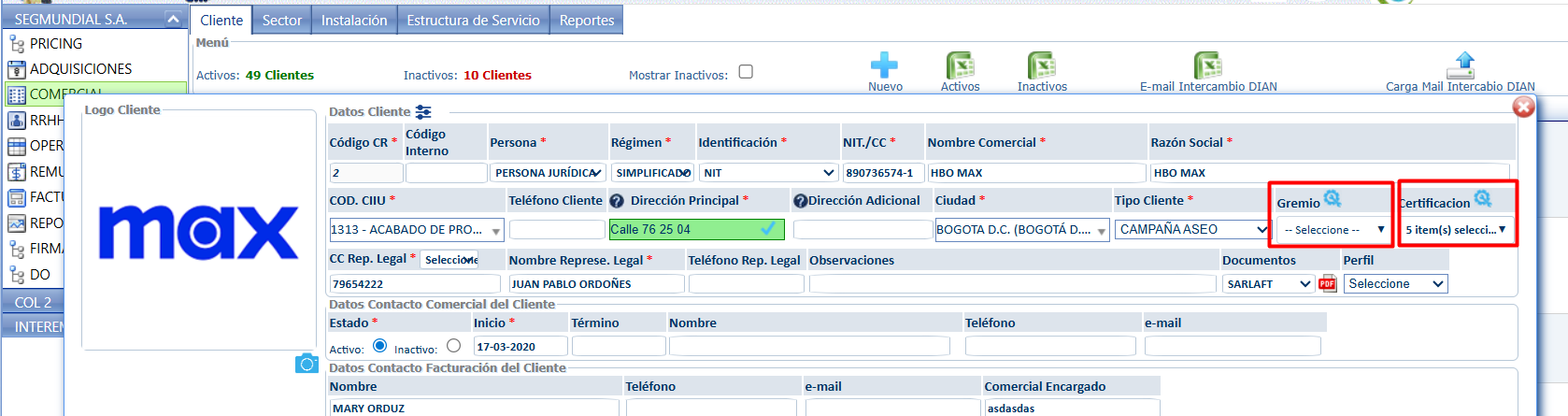 Posterior a la activación puedes volver a abrir una nueva ficha donde aparecerán los nuevos campos de Gremio y Certificación los cuales son autogestionables: