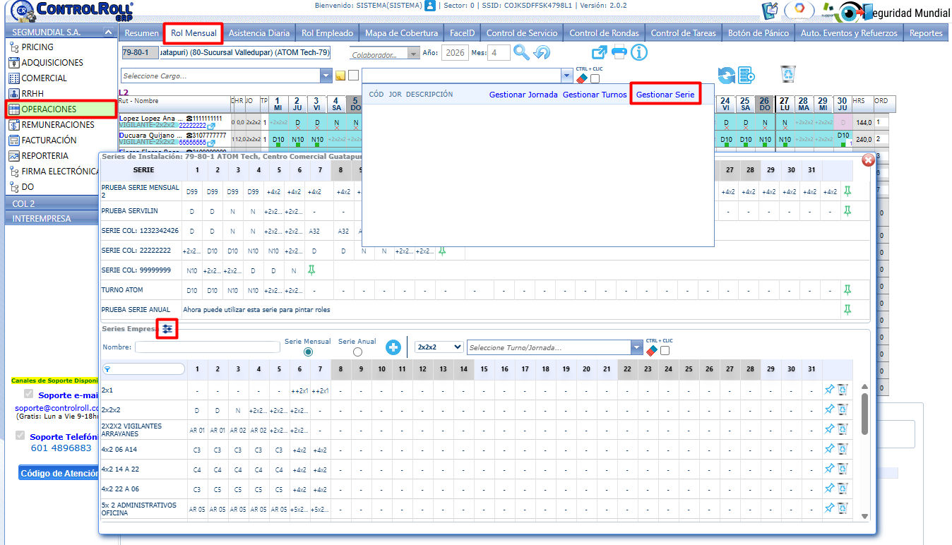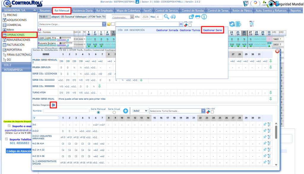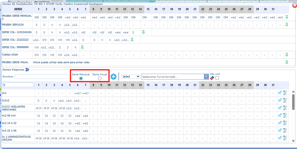 - Serie Mensual: Se utilizará para programar turnos que tengan una secuencia lógica mes a mes, esta es la metodología estándar y actual de ControlRoll.