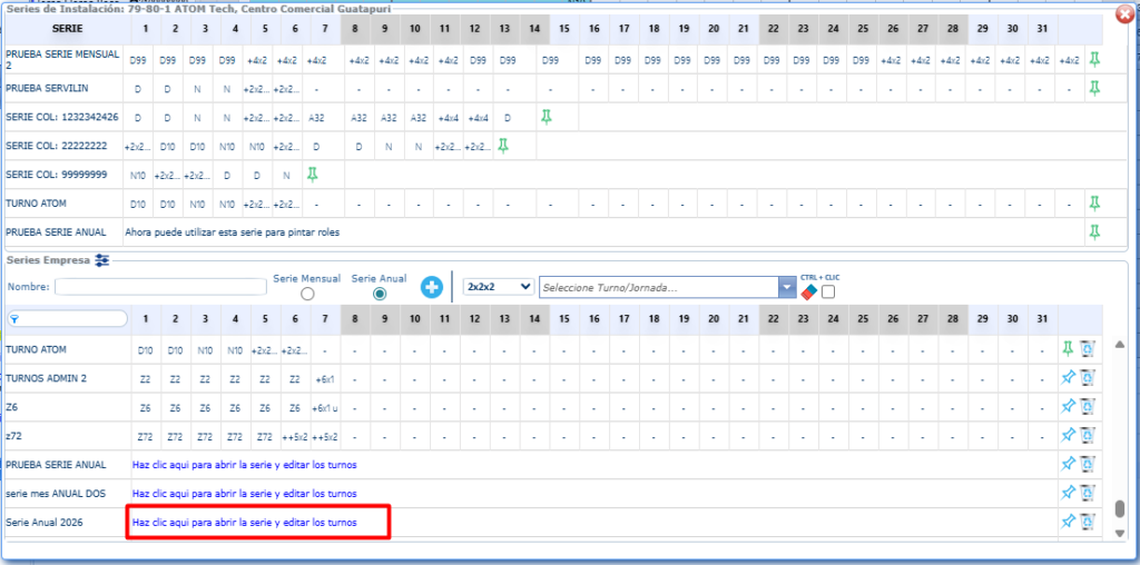 - Serie Anual: Se utilizará para programar los 12 meses del año, turnos que no tengan una secuencia lógica mes a mes.