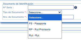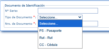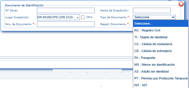 - Al ingresar a la ficha el primer campo a digitar es el del tipo de documento (1)