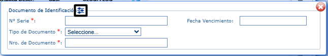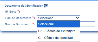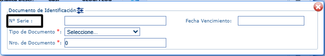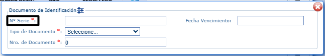 El campo Número de Serie será obligatorio. Esto se identificará con un asterisco (*) en la ventana de datos del documento de identificación.