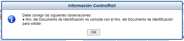Si por alguna razón se digitan dos números distintos en ambos campos, al momento de cerrar esta ventana no les va generar ninguna alerta, pero al momento de guardar la ficha del colaborador aparecerá el siguiente mensaje: