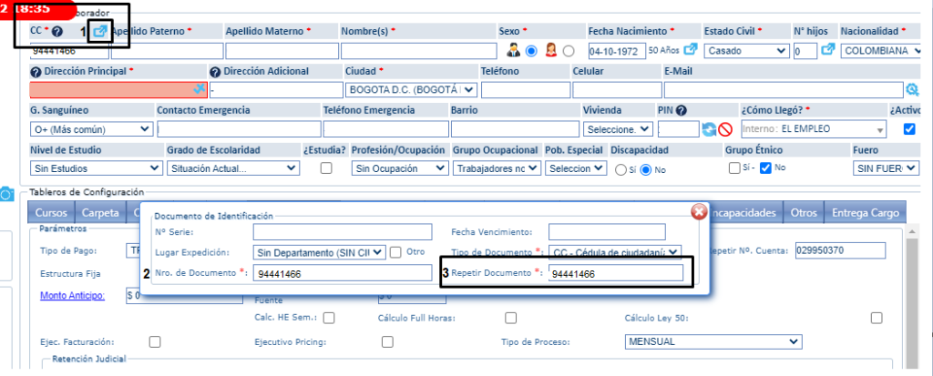 - En esta misma ventana encuentras nuevo campo “Repetir Documento”, el cual se utilizará para confirmar el dato ingresado en campo anterior 3.